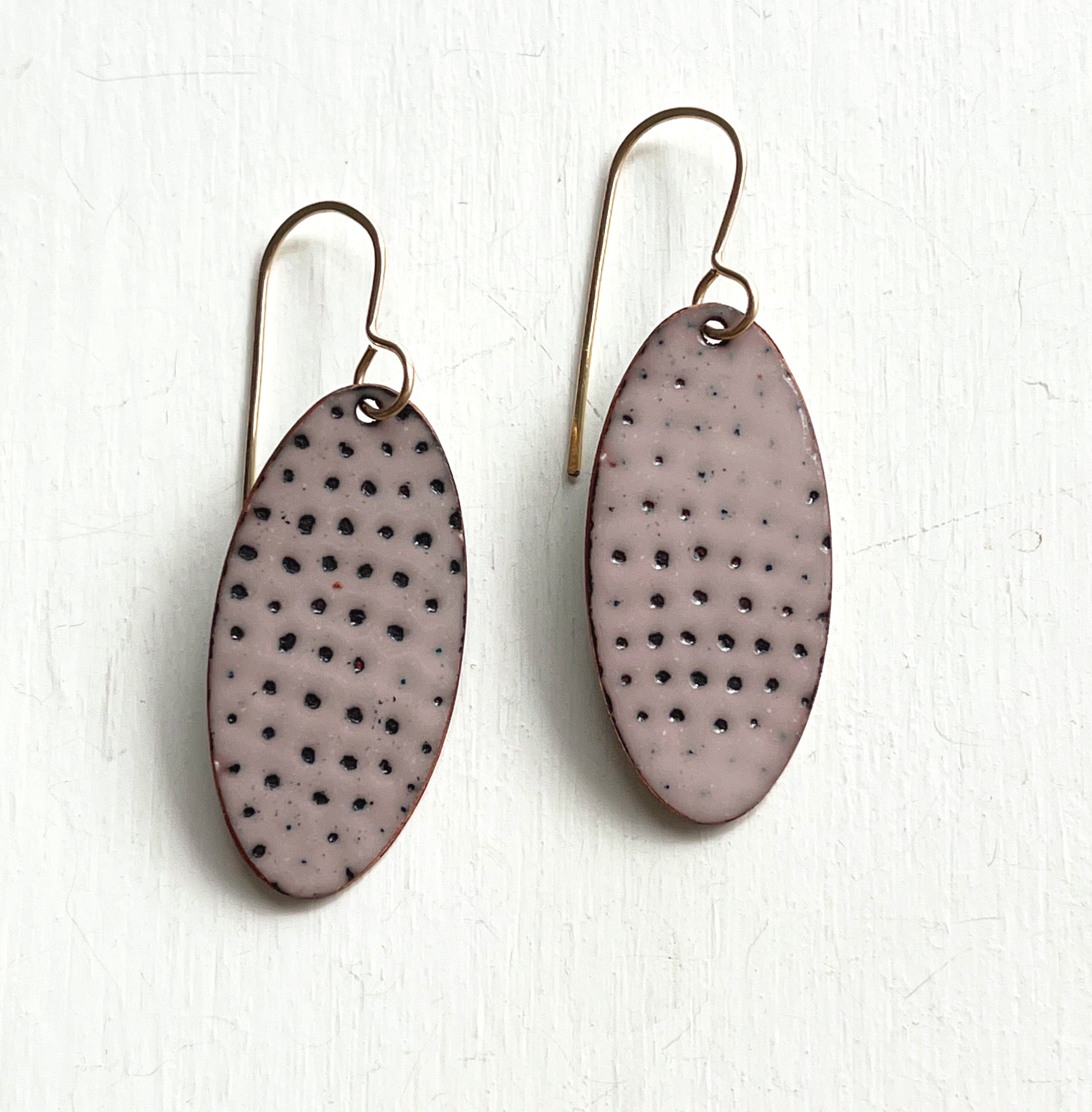 Line + Dot Earrings in kiln fired glass enamel on copper.