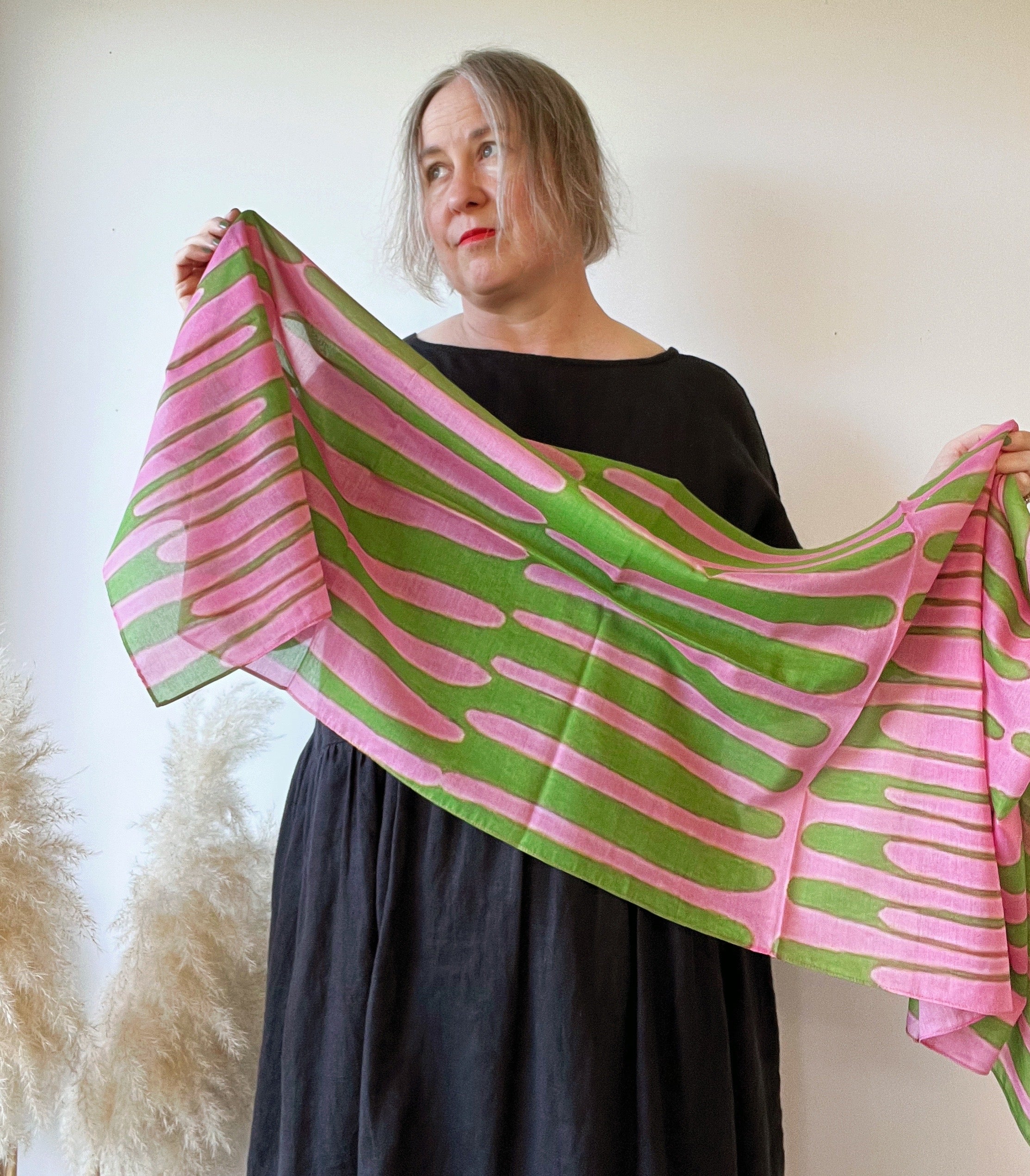 Symbiosis in Pink/Green. NEW! Cotton and silk. A digital print of my painting of the same name.
