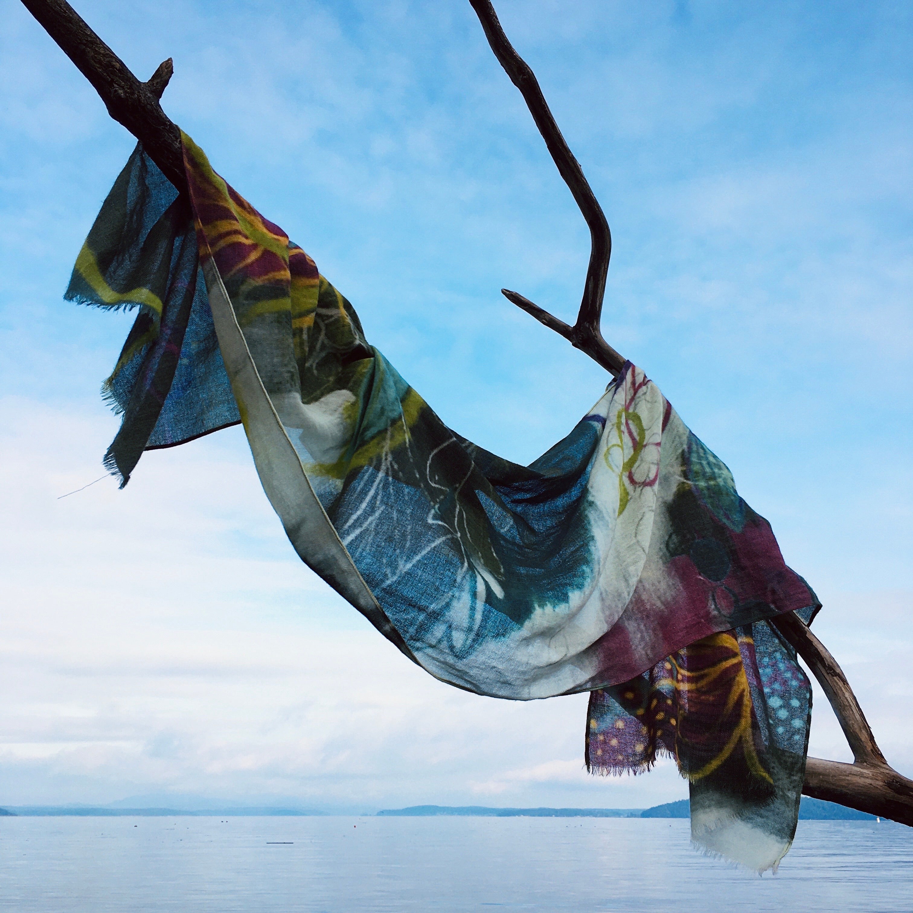 Winter Botany scarf. A luxuriously warm and soft scarf digitally printed from a detail of my painting Winter Botany. 90% wool 10% silk. It's the perfect accessory that goes with everything, keeps you warm in the winter, and cool in the summer.