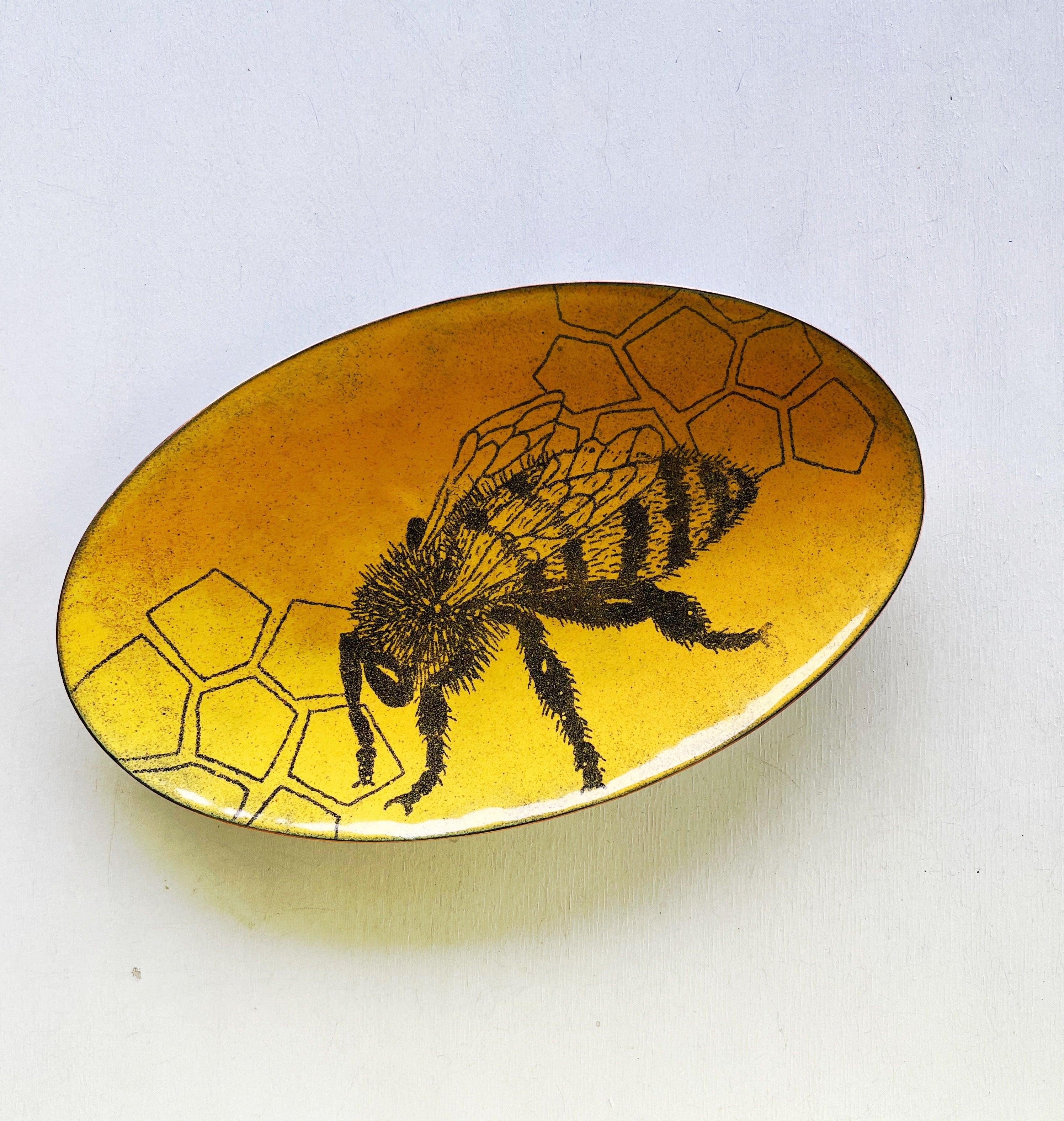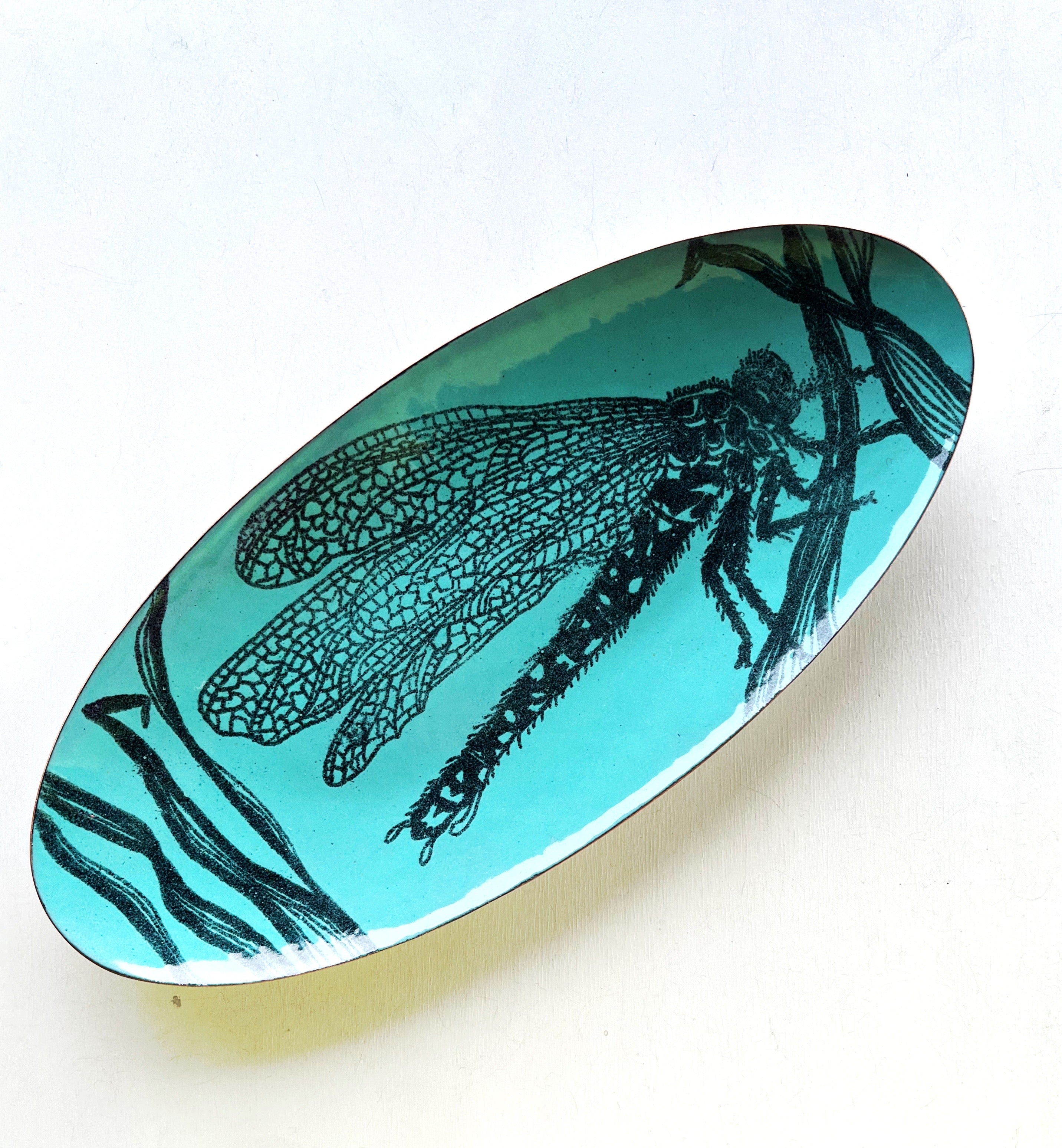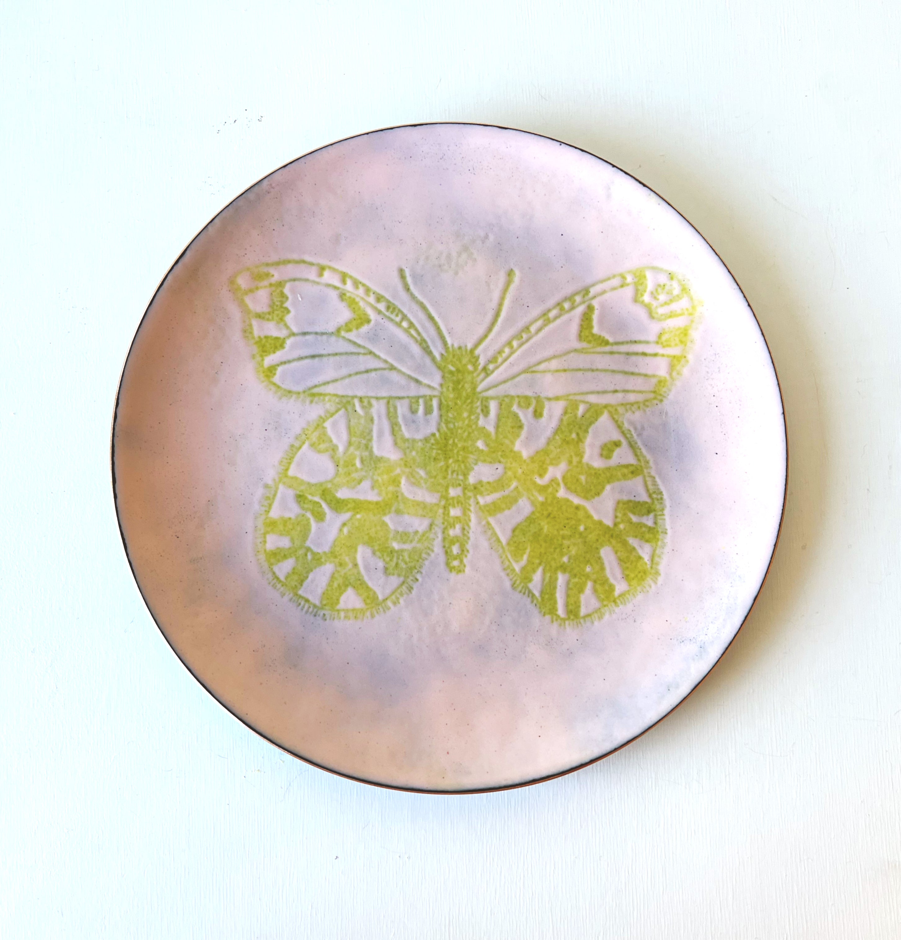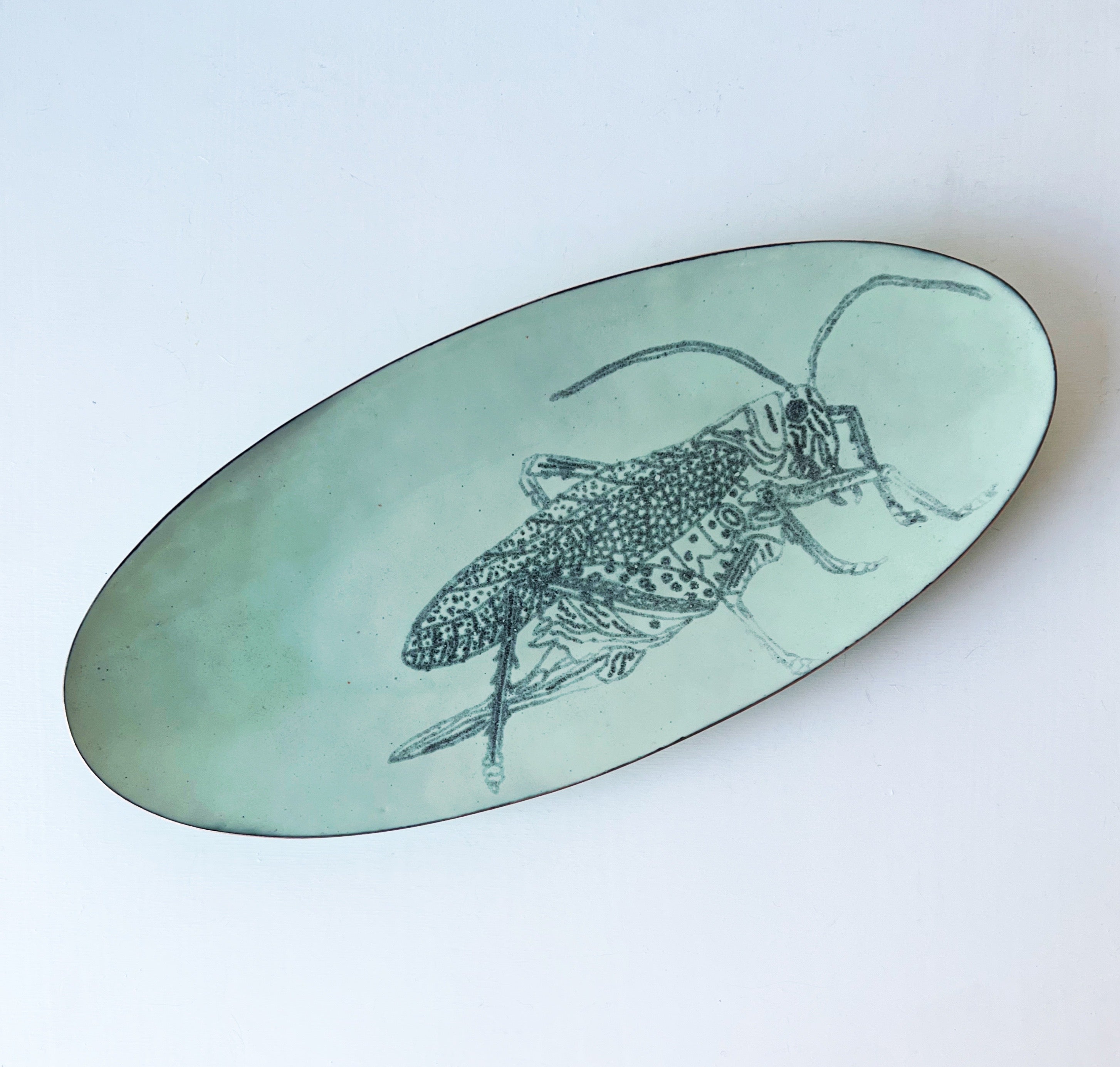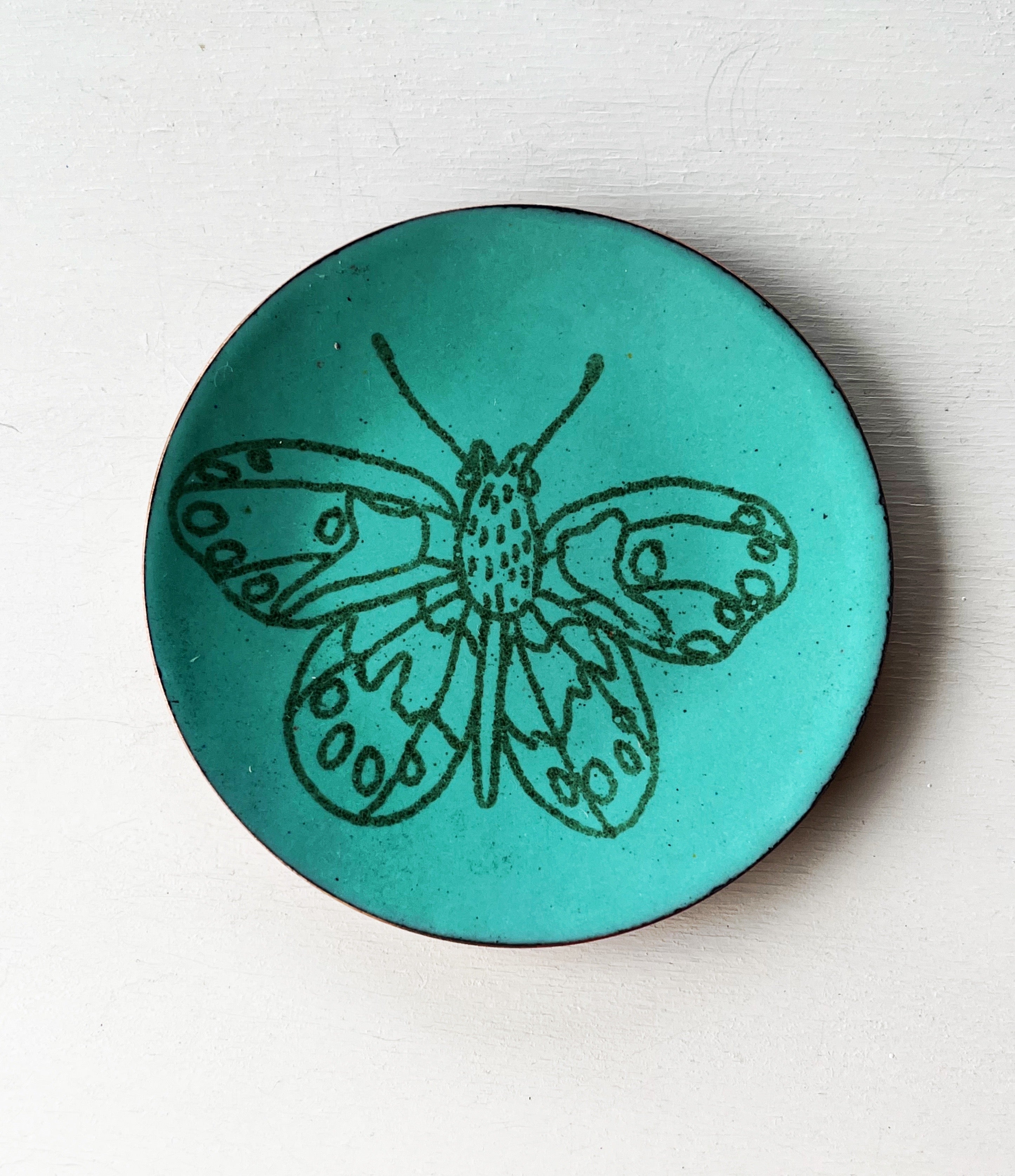 Insect Dishes in kiln fired glass enamel on copper.