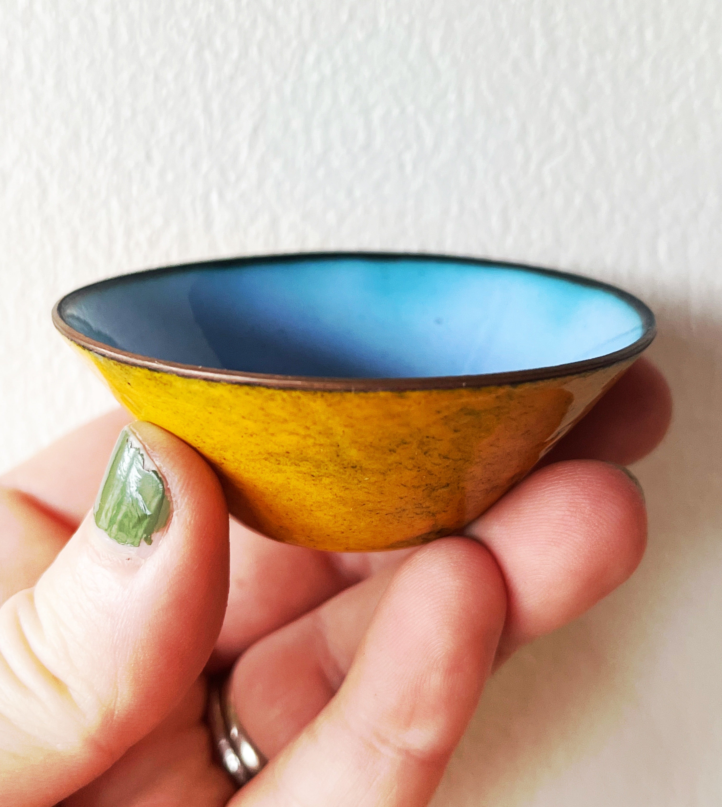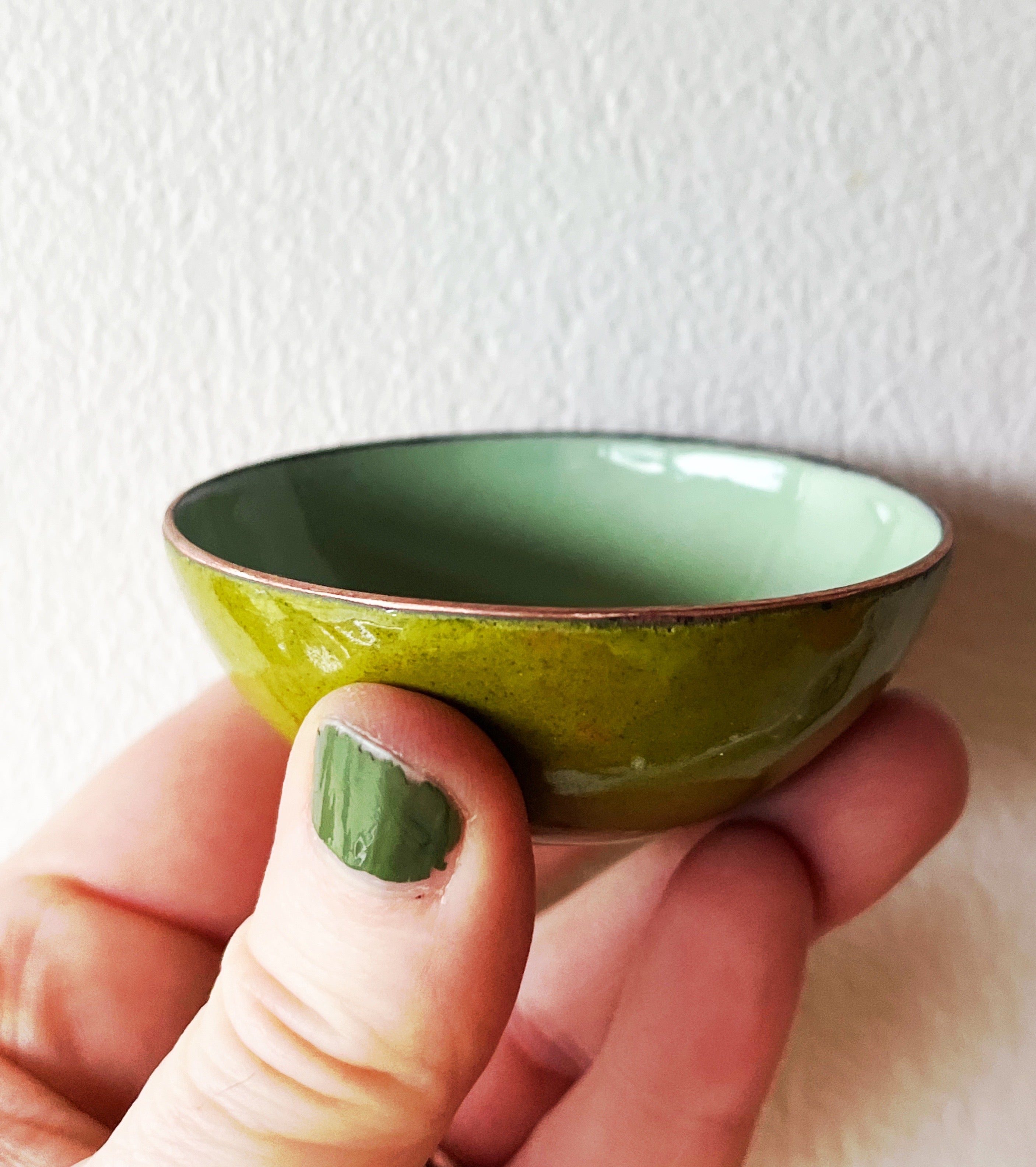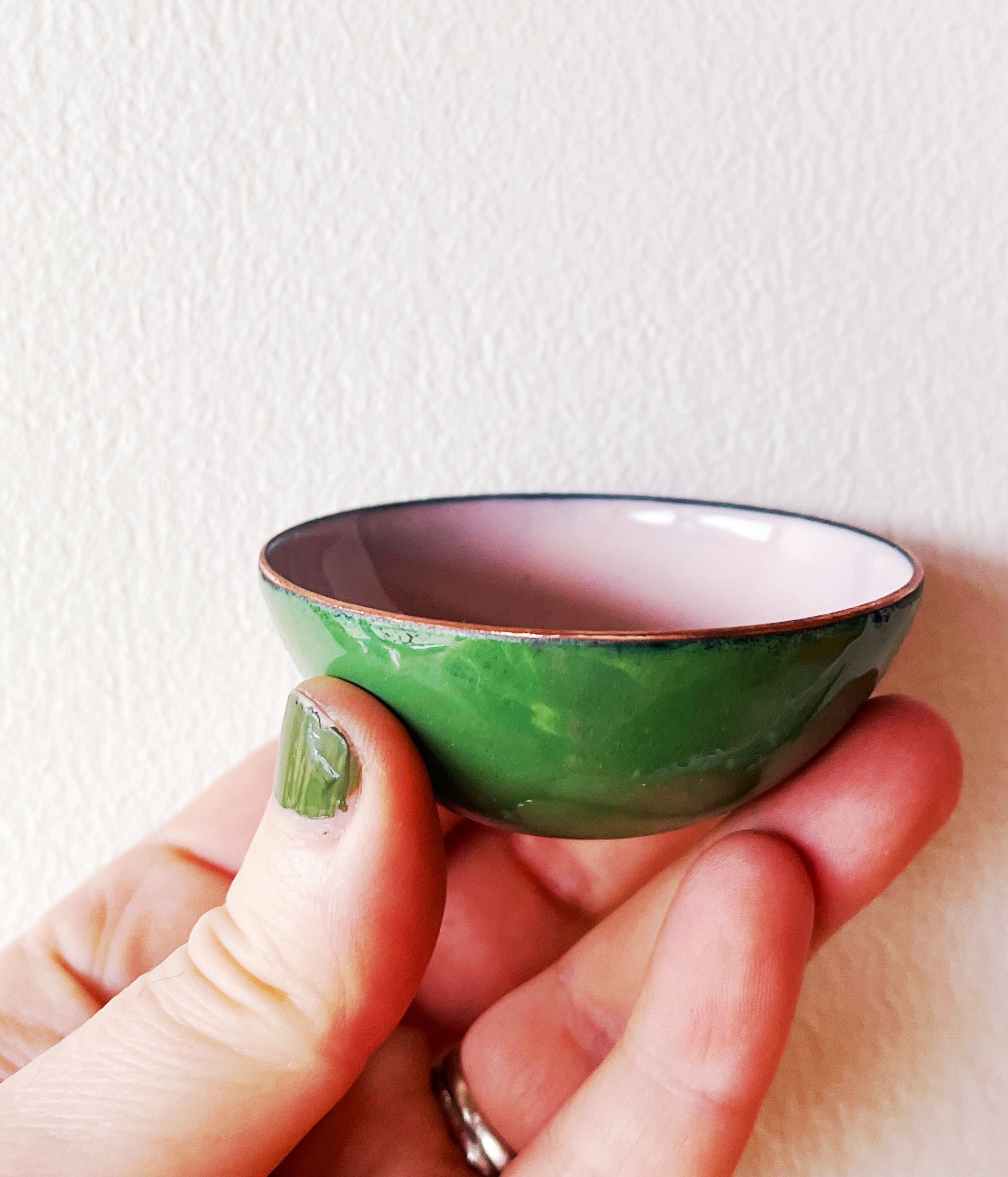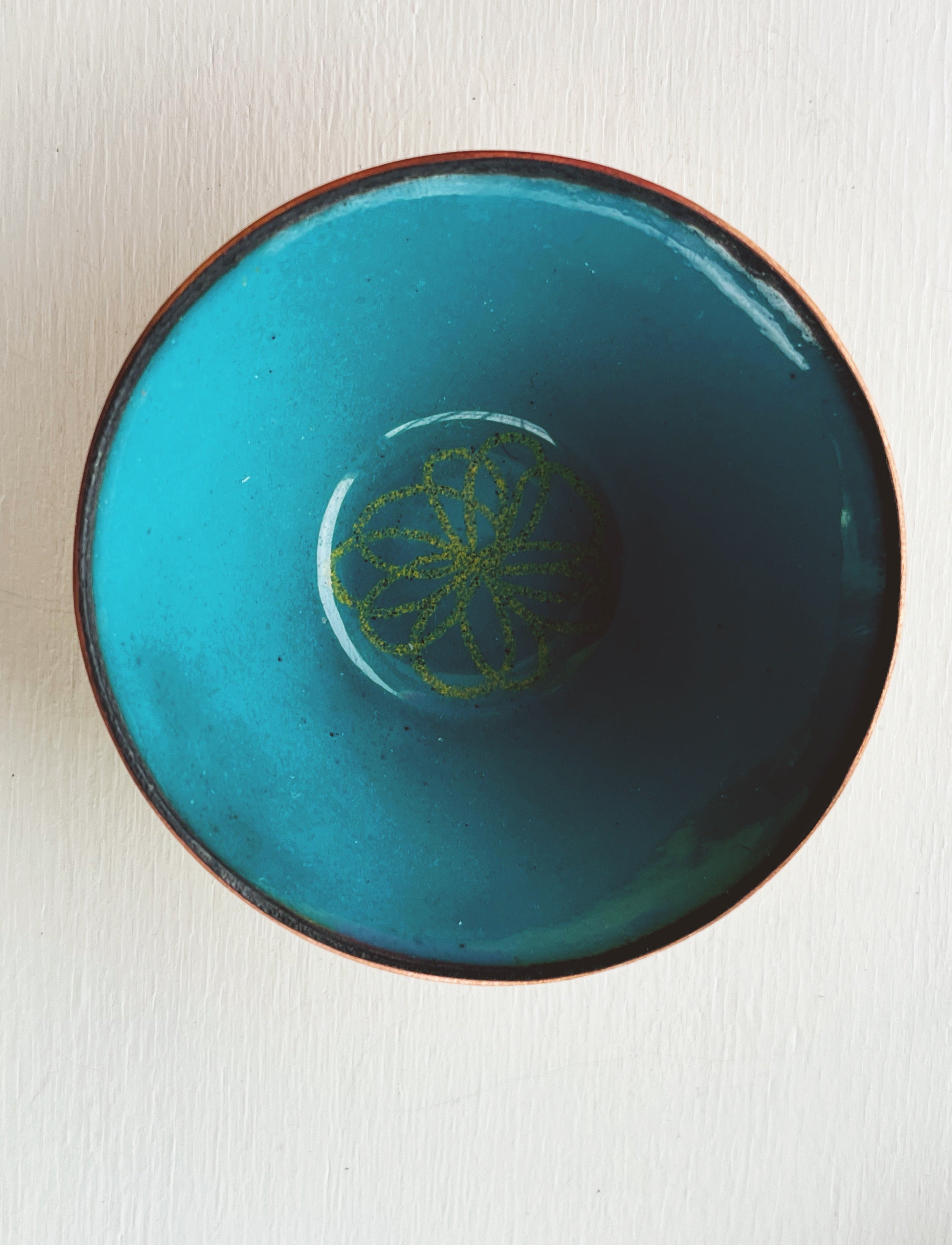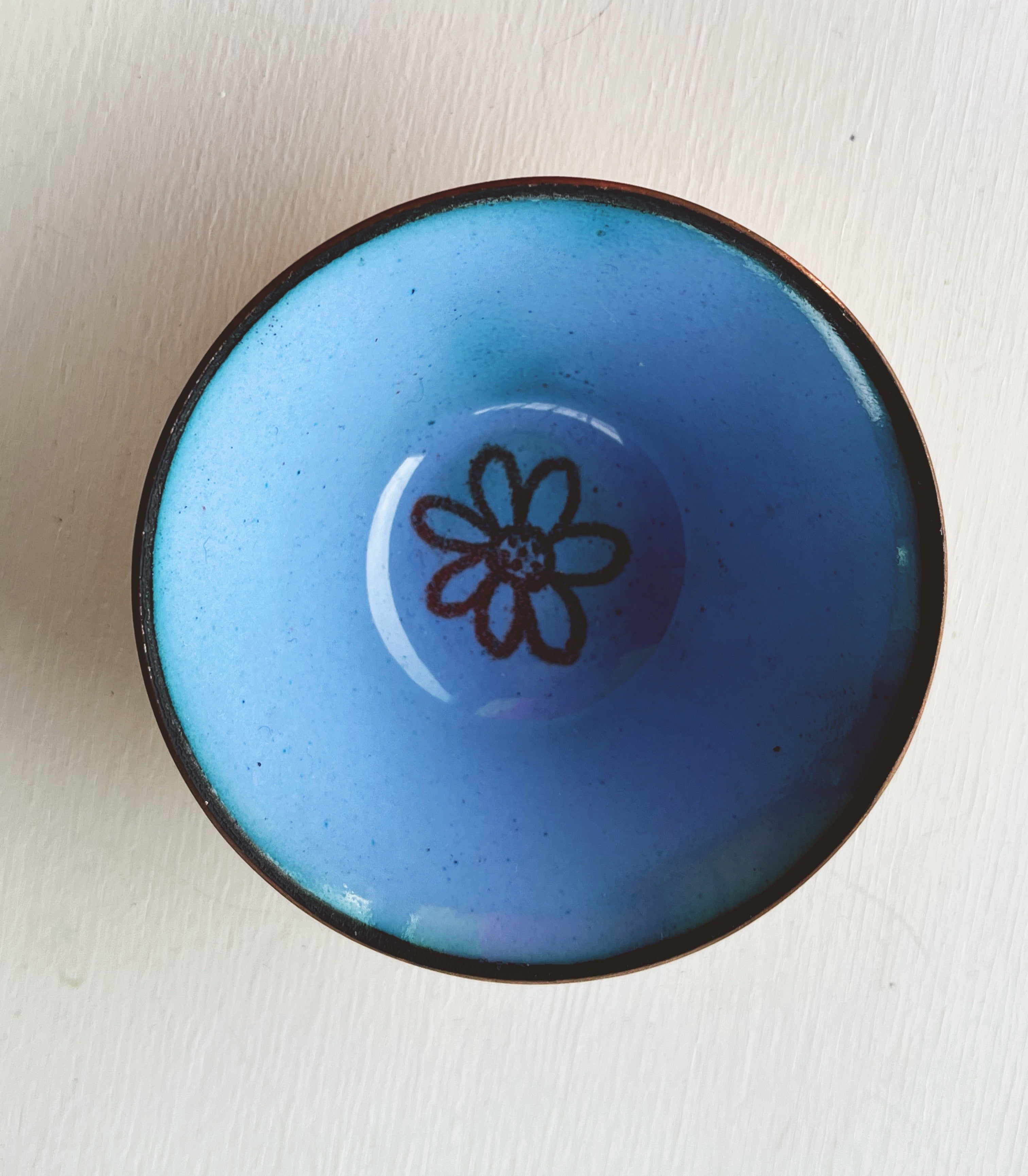 Little Flower Bowl in kiln fired glass enamel on copper.