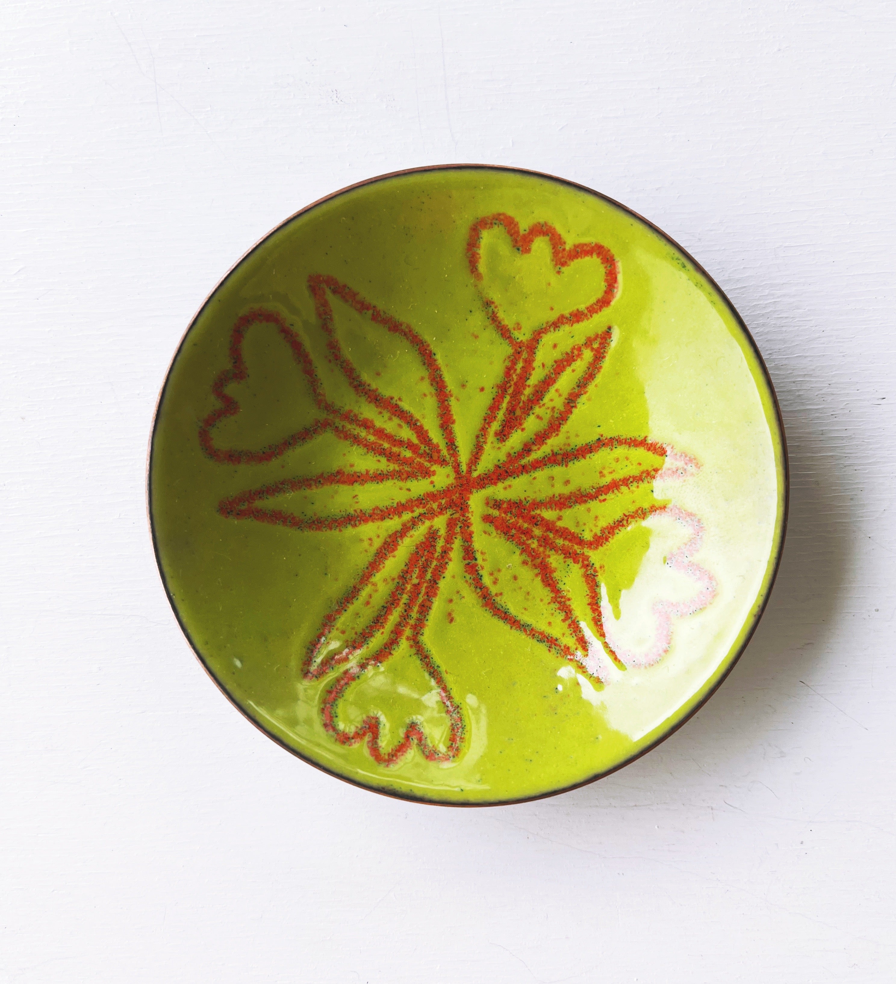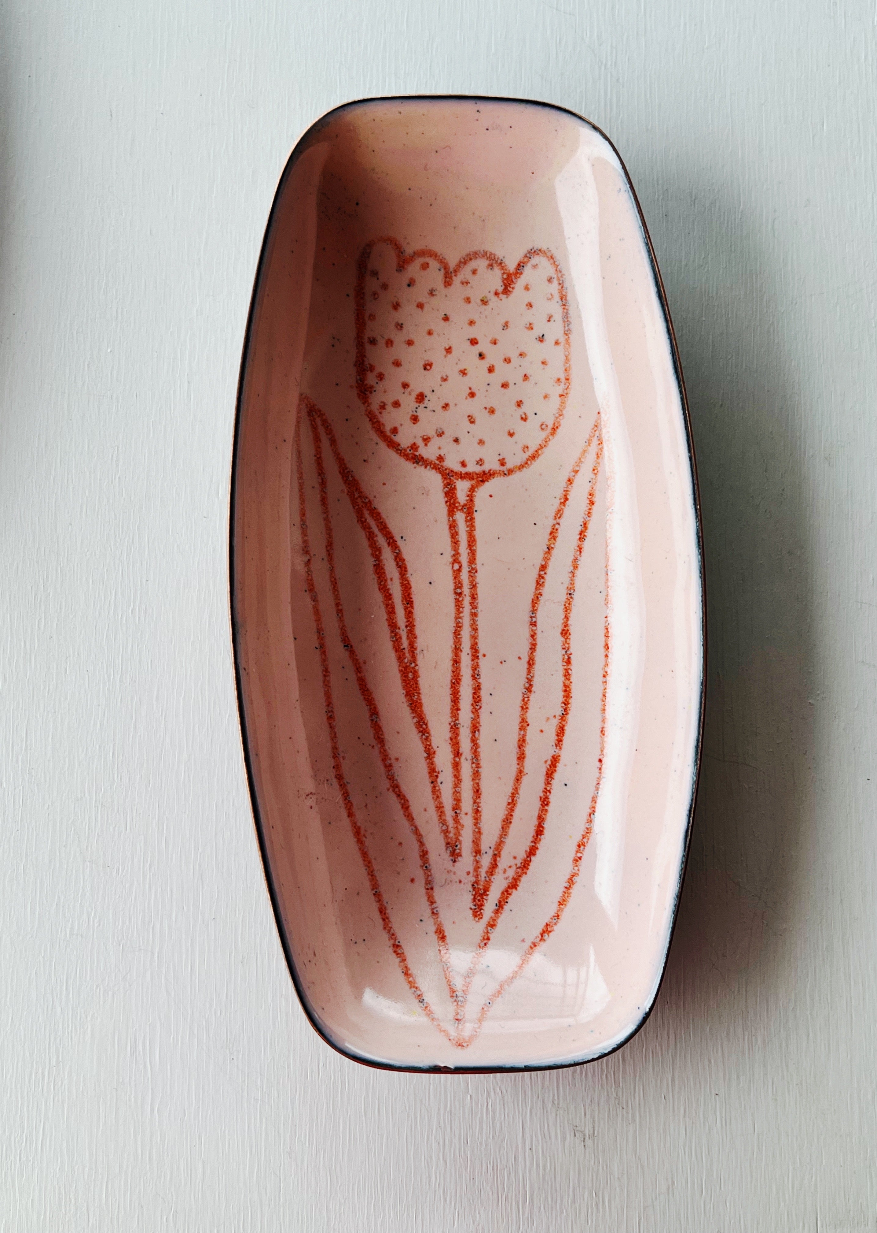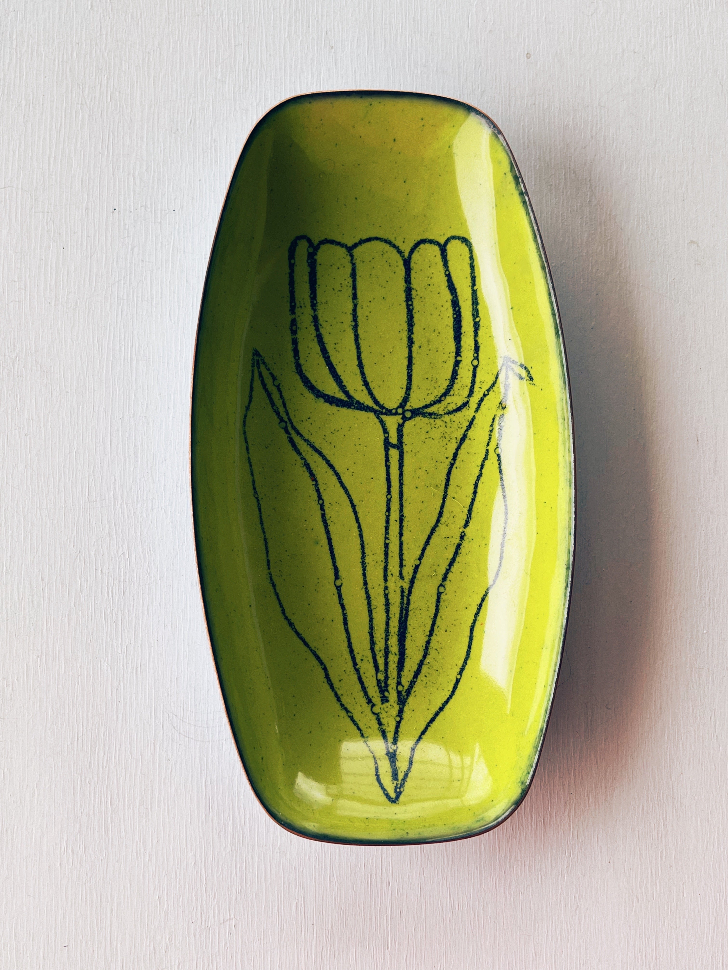 Tulip Dishes in kiln fired glass enamel on copper. NEW! So sweet and springy!