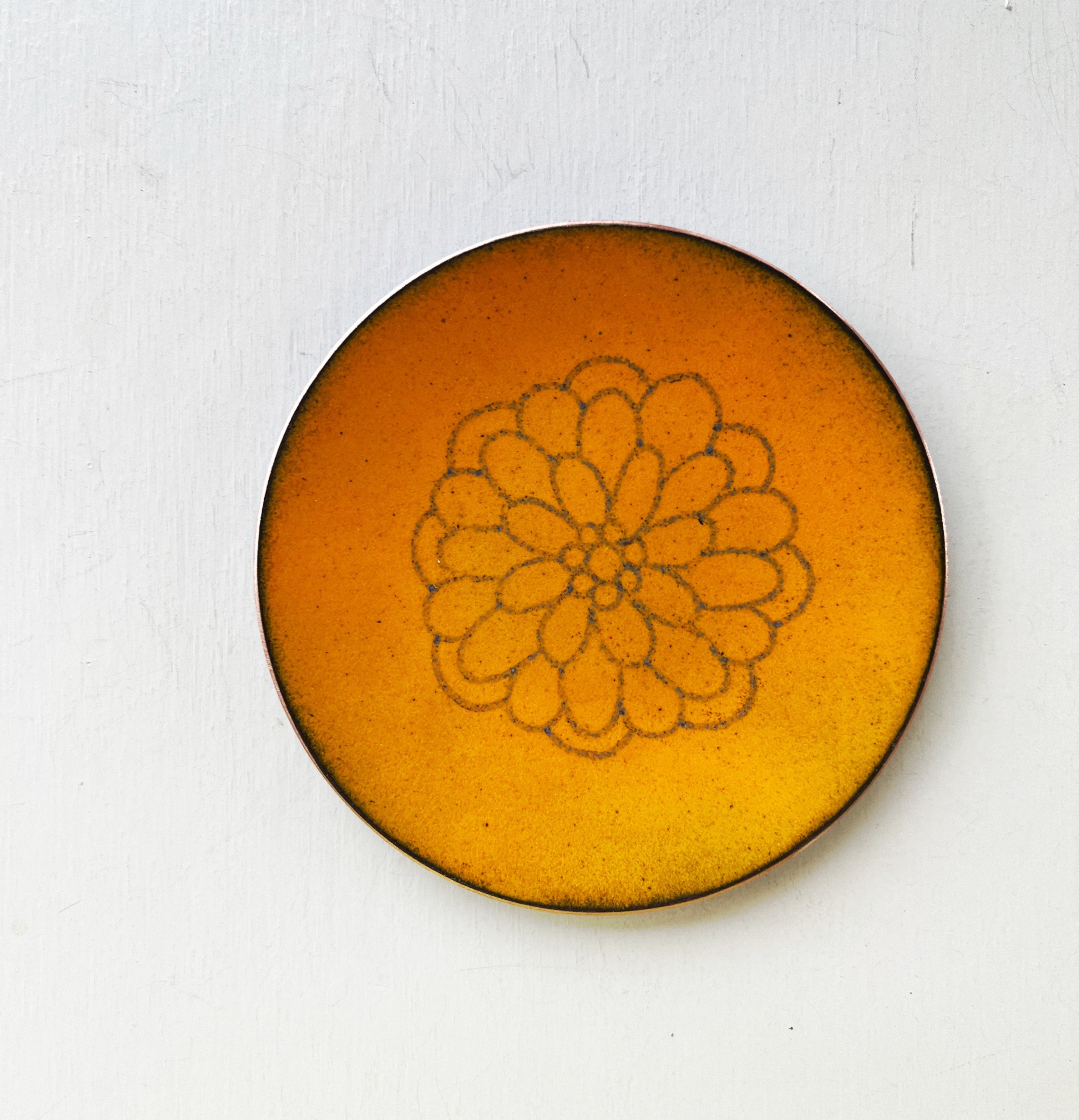 Three firings and hand drawn patterns so each one is one of a kind. Signed and dated on the back with a contrasting color. 3 inches.