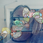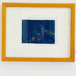 I actually love this one but it is impossible to photograph with the glare. Blue acrylic with ink ovals in colored pencil. It has movement and texture. Painted just after I moved to the island before I had an art studio.