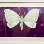 An original painting in acrylic on paper. Professionally matted and framed. Shades of pale green and brown on an eggplant background. No prints were made of this one.