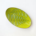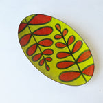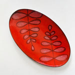 Kiln fired glass enamel on a stamped copper dish. I draw each one by hand, fire it four times, and sign and date the bottom. 4 1/2" x 7 1/2" x 3/4"