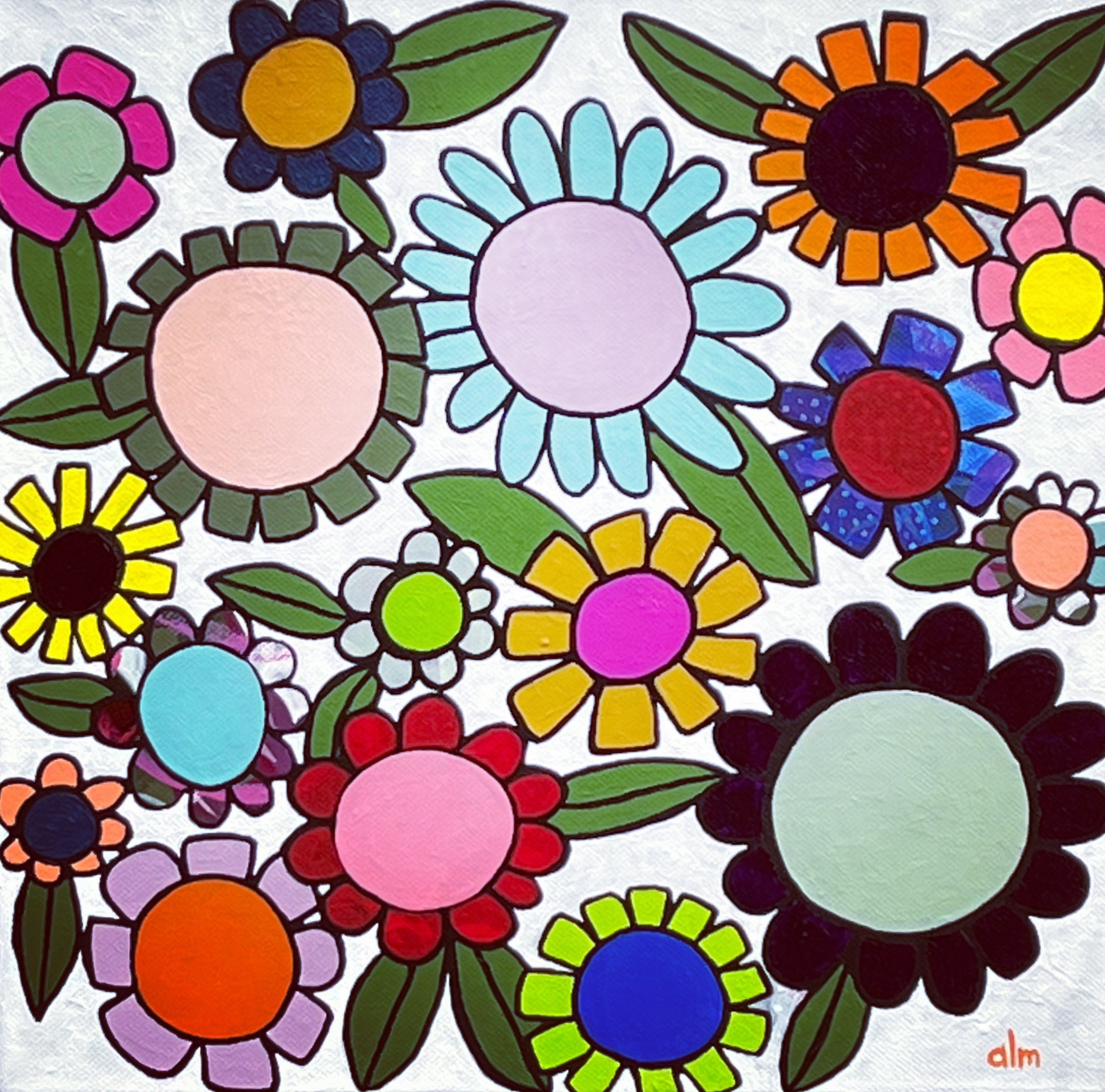 (I actually painted over an old painting I didn't like and some of it is showing through in a couple of the flowers)!