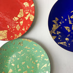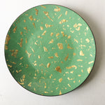 Like the sun shimmering on the water at sunset, striking 24K gold leaf is kiln fired on vitreous glass enamel.