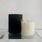 100% soy wax candle in minimal, elegant packaging. Clear or black glass with silver brushed metal or wood lid. Gift box option available. 7.5 oz with an approximate burn time of 50 hours. Height: 3 1/2" Diameter: 3 1/2".