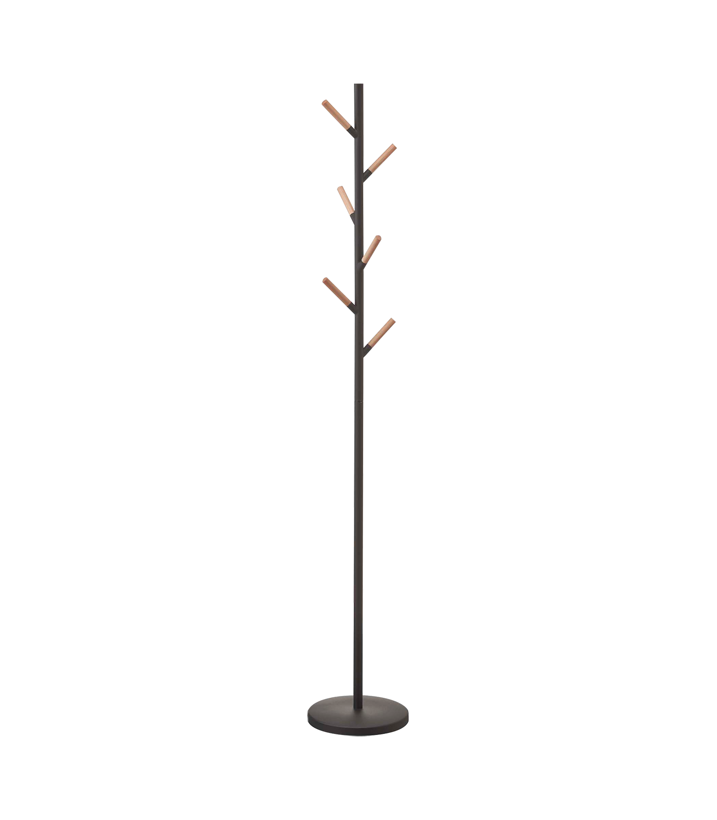 NATURAL DESIGN: Bring nature indoors with this tree-inspired look. Made of steel with wooden pegs for accents. Despite its slim design, its heavy, sturdy base securely holds your items. It is usable with or without hangers.